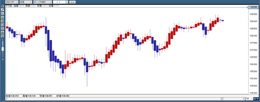 本日の東京為替市場は、ドル円は早朝は109.05円台で横ばいでしたが、仲値に向けて日経平均が買われ始めると、109.18円まで小幅ながら上昇しました。