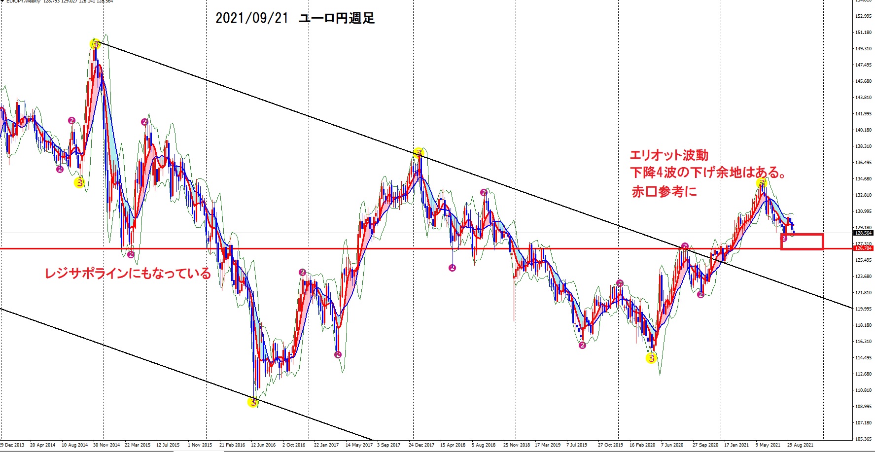 ユーロ円やポンド円も、エリオット波動から見ると、下げる余地(値幅)はあるのですが、多分、豪ドル円に追従すれば、下げずにいくのではないかと見ています。